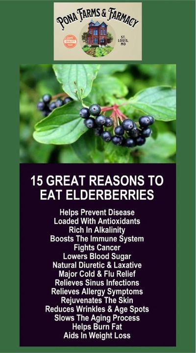Health benefits of Elderberries as the primary ingredient in Pona Farms & FarMacy elderberry syrup.